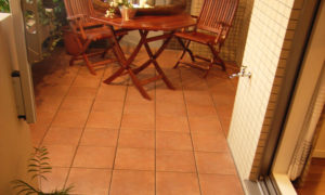 穏やかな天然石風の質感がバルコニーに落ち着きと高級感を与えます。